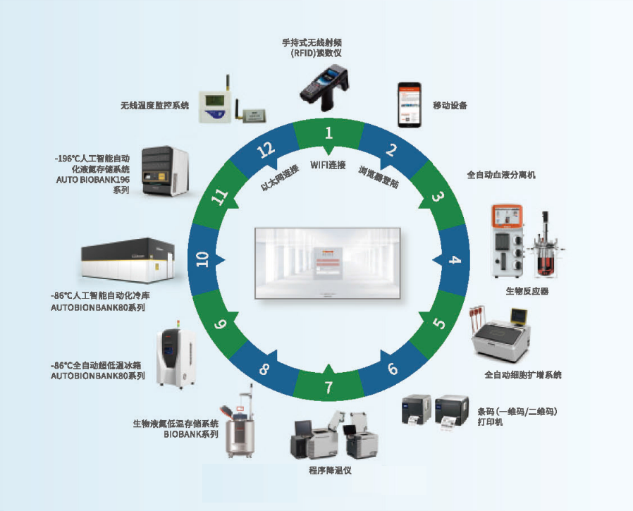 为客户量身定做符合自身需求的自动化、、、低成本、、高效能的新型生物样本资源库。。。。可实现从制备、、程序降温、、、、冷链运输、、转运、、、存取全流程自动化运营管理,,,,有效规避因人工误操导致的样本资源重大损失。。。。确保样本处于全流程深低温保护环境,,,,并对其进行高效检索和信息追溯,,,,使样本存储质量、、、效率与安全性获得显著提升。。